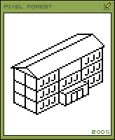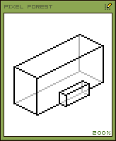 在像素画中如果只绘制单一角度的形态,始终是缺乏表现力的。如果要转变角度,那就涉及到透视的规律。在透视学中,透视可分为形体透视(几何形透视)和空气透视。形体透视是根据光学和数学的原则,在平面上用线条来图示物体的空间位置、轮廓和光暗投影的科学。空气透视研究和表现空间距离对于物体的色彩及明显度所起的作用。因为透视现象是远小近大,所以也叫“远近法”。按 照灭点的不同,分为平行透视(一个灭点)、成角透视(两个灭点)和斜透视(三个灭点)。而像素画中绘制一点、两点以及三点透视的线条很难有规律可寻循,因 此像素画中的透视法简化变通了上述的透视规律。根据像素线条的特有属性,一种没有灭点的俯视平行透视被广泛的运用起来。